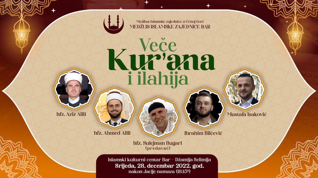 Veče Kur’ana i ilahija, manifestacija koja je priređena u organizaciji Medžlsa Islamske zajednice Bar u Islamskom kulturnom centru.